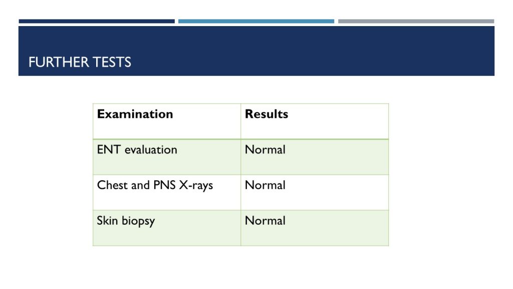 It is important to consider the possibility of other vasculitis and other similar rashes. Clinical characteristics to be considered for differentiating different types of C- ANCA-positive vasculitis are listed in table 4.