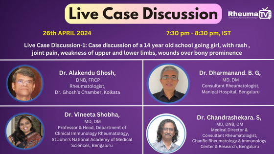Live Case Discussion – Case discussion of a 14 year old school going girl, with rash , joint pain, weakness of upper and lower limbs, wounds over bony prominence September 27, 2025April 4, 2024 Ask question to our experts