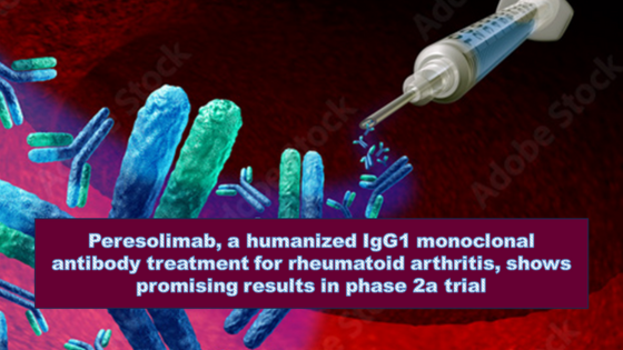 Peresolimab, a humanized IgG1 monoclonal antibody treatment for rheumatoid arthritis, shows promising results in phase 2a trial